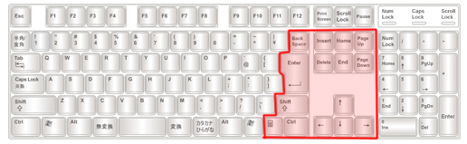 キーボード配置は右手の操作を基本としているためか、制御系の重要なキーはほぼ全て右手で操作することが前提になっている。マウスを持ち替えることで、右手でこれらの制御キーを操りながらマウス操作が同時にできるようになる。これは思った以上に効率がよい。| Enter | 実行する。またはマウスのダブルクリックと同等 |