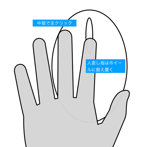 PCを左利き用のマウス設定にするのがよいって記事も見かけます。好みかもしれませんが、右利き用のマウス設定をそのまま使うメリットのほうが大きい。そうすることで、どうしても右手にマウスを一時的に戻したい場合などに持ち替えが手軽になります。また、左右の持ち替えを前提にするとマウスをワイヤレスにしておくのもかなり効果的です!人差し指をウィールに固定して、中指で主クリックをする。思っているほど右クリックって使わない。それだったら、人差し指は思い切ってウィールに固定してスクロールとか、タブブラウザのタブをバックグラウンドで開くのに使う。(タブブラウザでは、リンクをウィールマウス部分てクリックするとバックグラウンドのタブでページを開いてくれます。)