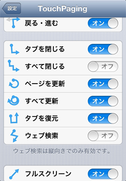 このブラウザ、ジェスチャーも使えます。小さい画面で小さいボタンを押すのには限界があります。そこで、予め決まった動きで画面をなぞることでブラウザを操作できるのがジェスチャー機能です!これが意外と便利。