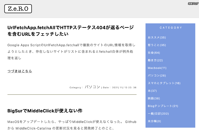 このブログ、カテゴリと記事しかないので、とっても簡単な構成ですけどもスッキリしました。これでスマホでもPCでもキレイに見えるようになりました。