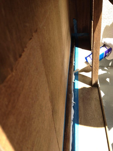必要な材料を揃え、エポキシ樹脂がはいったセメントを塗りこむことに。土曜日の仕事帰りにK氏が立ち寄ってちょこっとだけ作業をして帰っていった。